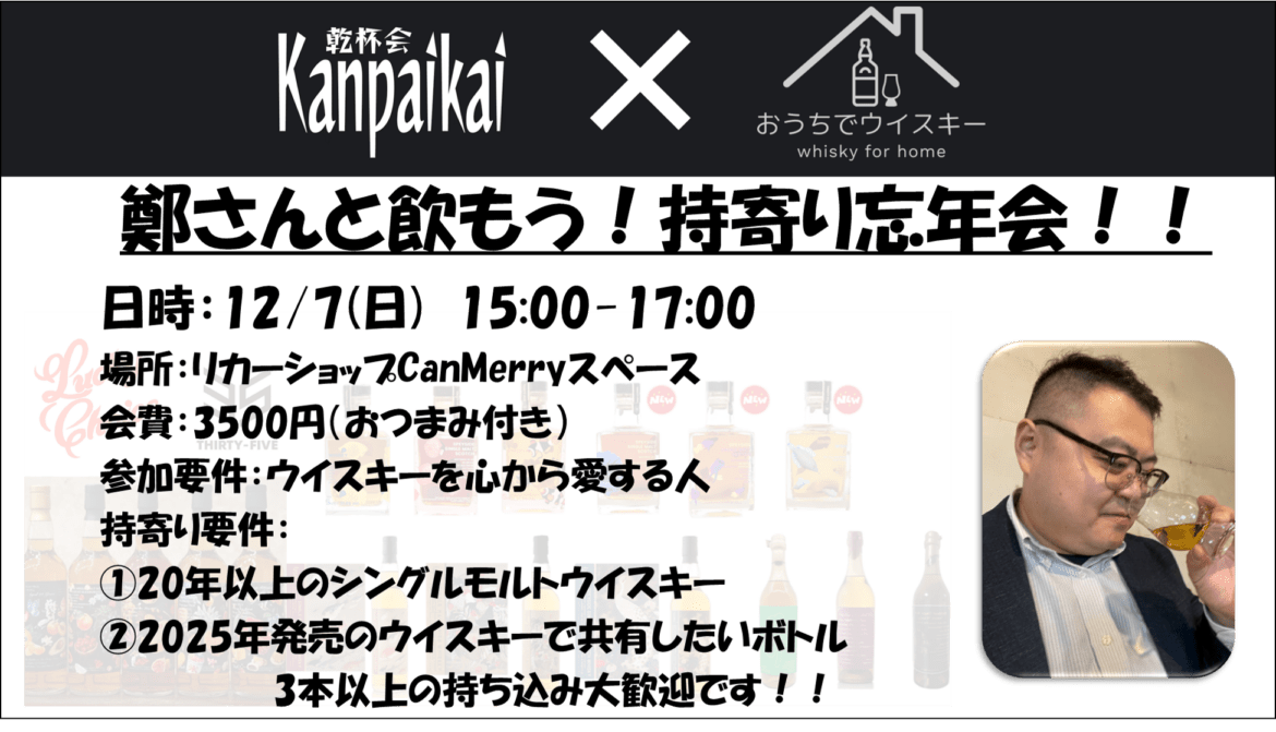 12/7(日)15:00~17:00 乾杯会 鄭さんと飲もう!持寄り忘年会!!(参加費3500円)